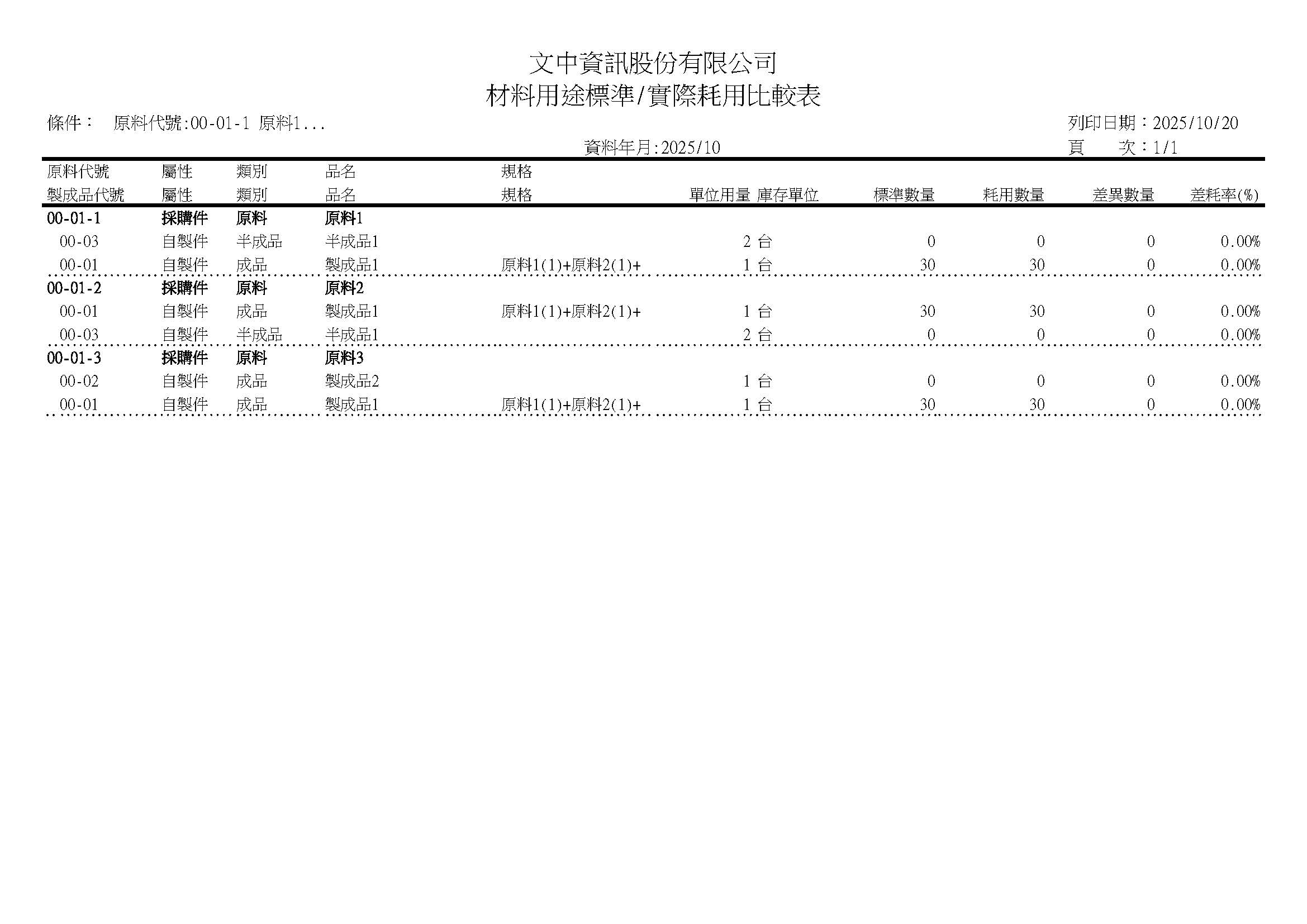 材料用途標準-實際耗用比較表